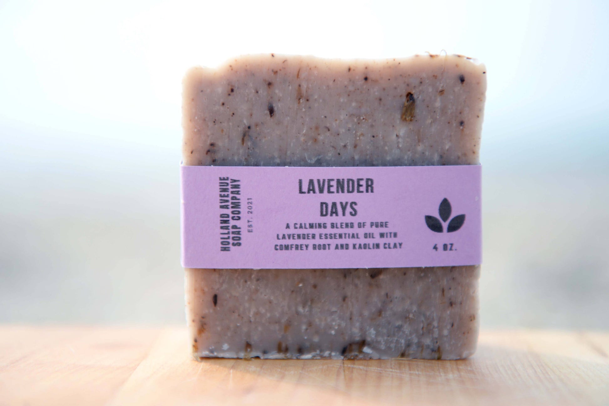 Lavender Days: A calming blend of avocado oil, pure lavender essential oil, comfrey root, and kaolin clay. During spring and summer, these feature Rockaway-grown lavender flowers.