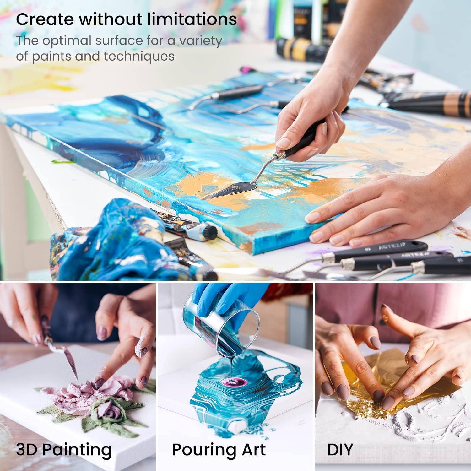 Save yourself time and money by ordering this 2-pack of gesso primed classic 30”x40” stretched canvases. Both canvases in this super value pack come pre-primed with three coats of cruelty-free (animal-friendly), acid-free titanium acrylic gesso. Since these economy cotton stretched canvases are pre-primed, you save yourself the time, energy, money, and hassle associated with priming canvases. Our perfectly textured 30”x40” stretched canvases are made of a smooth, 100% cotton surface with enough grain for paint to beautifully hang from. The canvases in this 2-pack are sturdy and reliable. The durable pinewood stretcher bars hold your canvas firmly. These strong stretched canvases are ideal for wet and dry media. Our versatile canvases are designed for a wide variety of paints and techniques. Work with acrylic, gouache, tempera, oil, and pouring paint with our dependable stretched canvases.